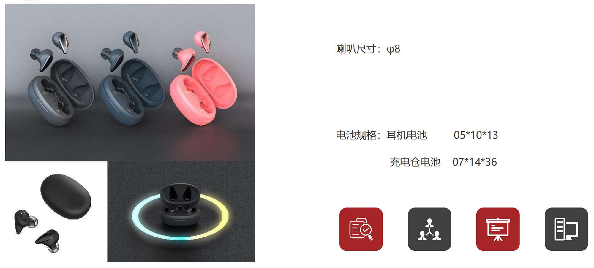 电池规格:耳机电池 05*10*13、充电仓电池 07*14*36